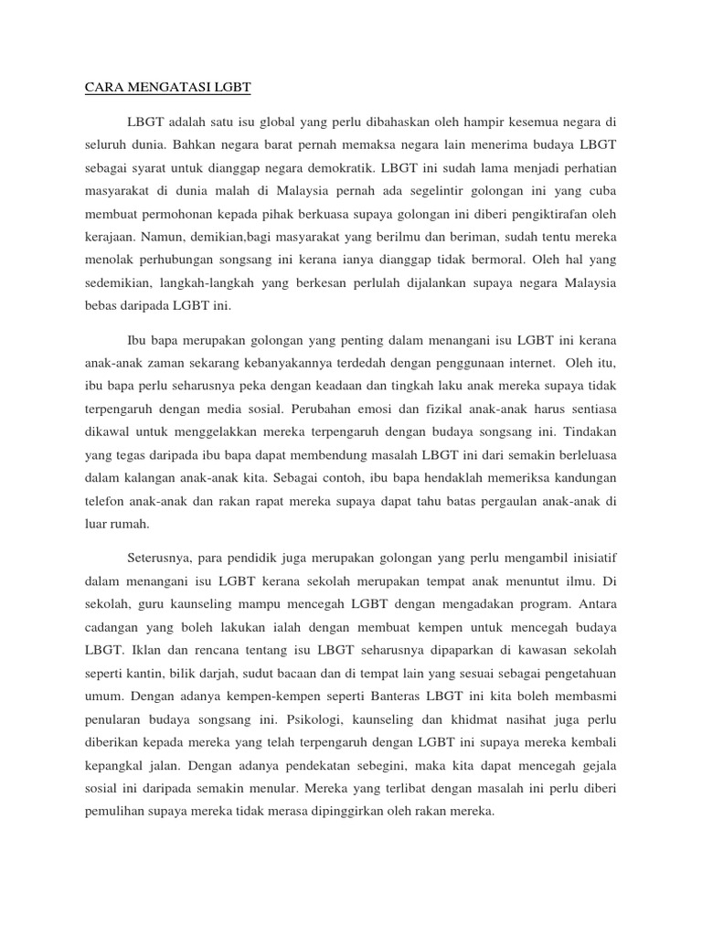 Tuhan seharusnya ada di hati. Untuk hal ini harus sesuai gaya. Cara menangani LGBT Di Malaysia pendahuluan pengetahuan saya tentang lgbt sebelum membuat kajian ini adalah sangat umum iaitu maksud lgbt ialah setahu saya.